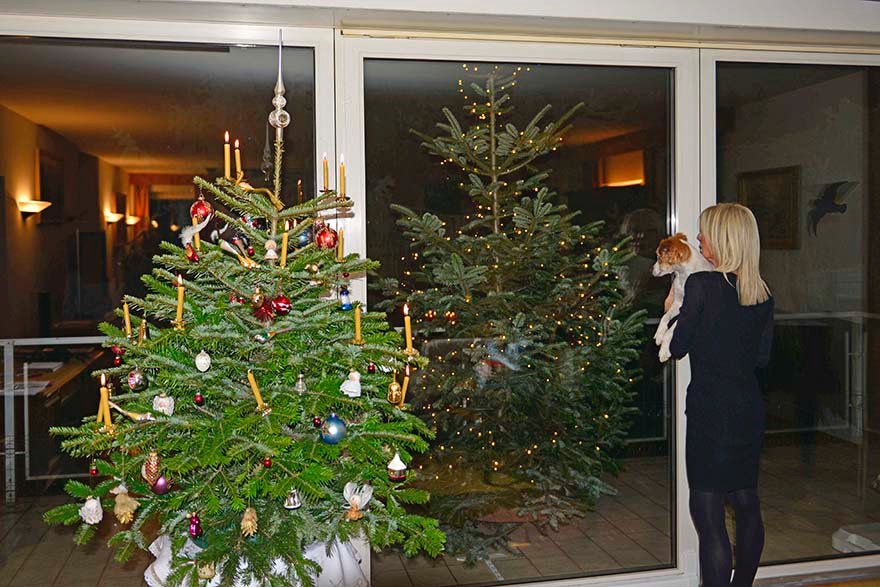 11Meine erste Weihnacht - ich bestaune meine beiden Christbäume, einen großen im Garten und ein kleinen im Zimmer
