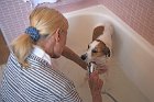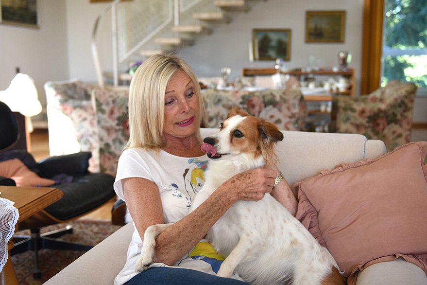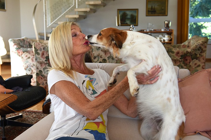 Frauchen bekommt ein Bussi zu ihrem Geburtstag
